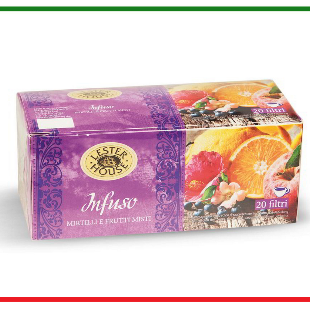 Lester House Tè ai mirtilli e frutta - 20 bustine Lester House Mirtilli e Frutti Misti Infuso di mirtilli e mix di frutta dal gusto deciso e rinfrescante. Ideale in