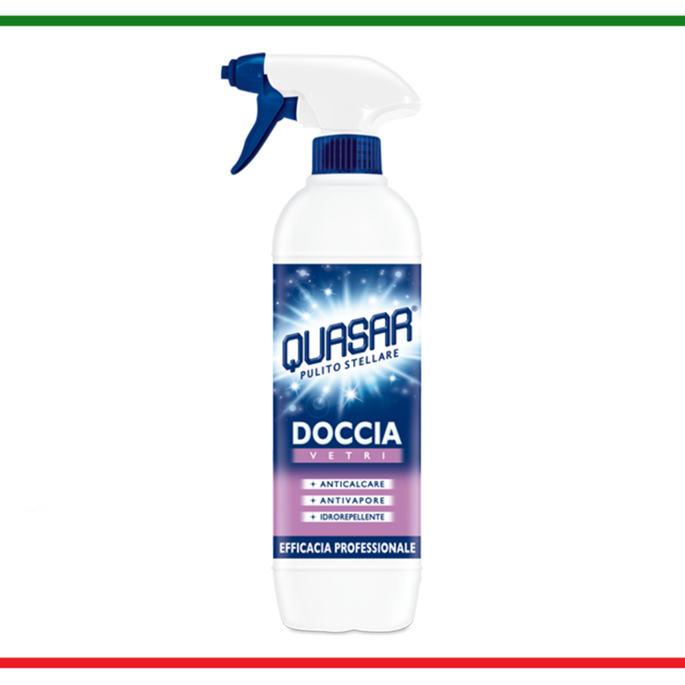 Detergente per vetri con formula originale senza aloni, ad asciugatura rapida e senza brillantante. Vetrine Lampadari Specchi Tavoli in vetro Consigli di utilizzo Spruzzare una piccola quantità di Quasar Vetri