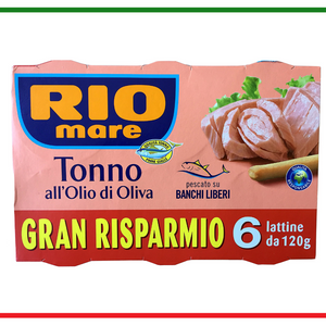 Tonno Rio Mare all' Olio di Oliva - il tonno in scatola all'olio di oliva è il tonno più apprezzato e amato dagli italiani! Merito del gusto unico e inconfondibile del tonno caratterizzato dal suo colore rosa e della selezione di alta qualità che rimane sempre costante, garantita da severi controlli e da un elevato livello di pulizia. Il tonno Rio Mare viene conservato con l'aggiunta di olio d'oliva e un pizzico di sale marino. Ingredienti: tonno, olio d'oliva, sale marino