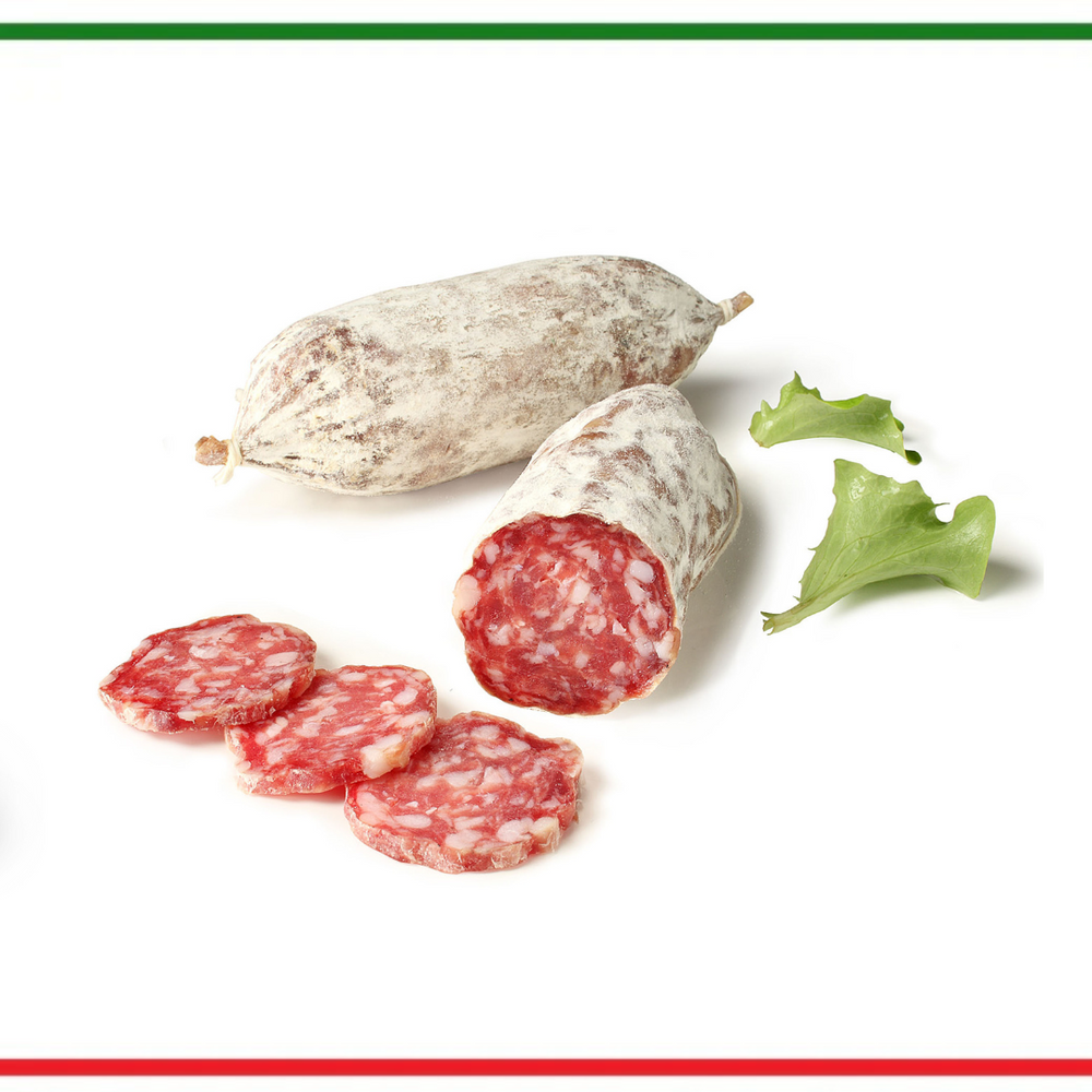 Ingrediente Carne de porc, grasime de porc, sare, miere de o mie de flori, piper, usturoi, condimente, arome, antioxidanti: E300-E301, conservanti: E250-E252 VALORI NUTRITIONALE LA 100 G.Energia 1865 KJ/444 Kcal Grasimi 38 g din care acizi grasi saturati16 g Carbohidrați 0.5g din care zahăr 0 g Proteine 25 g Sare 3,8 g PRODUS ÎN ITALIA.