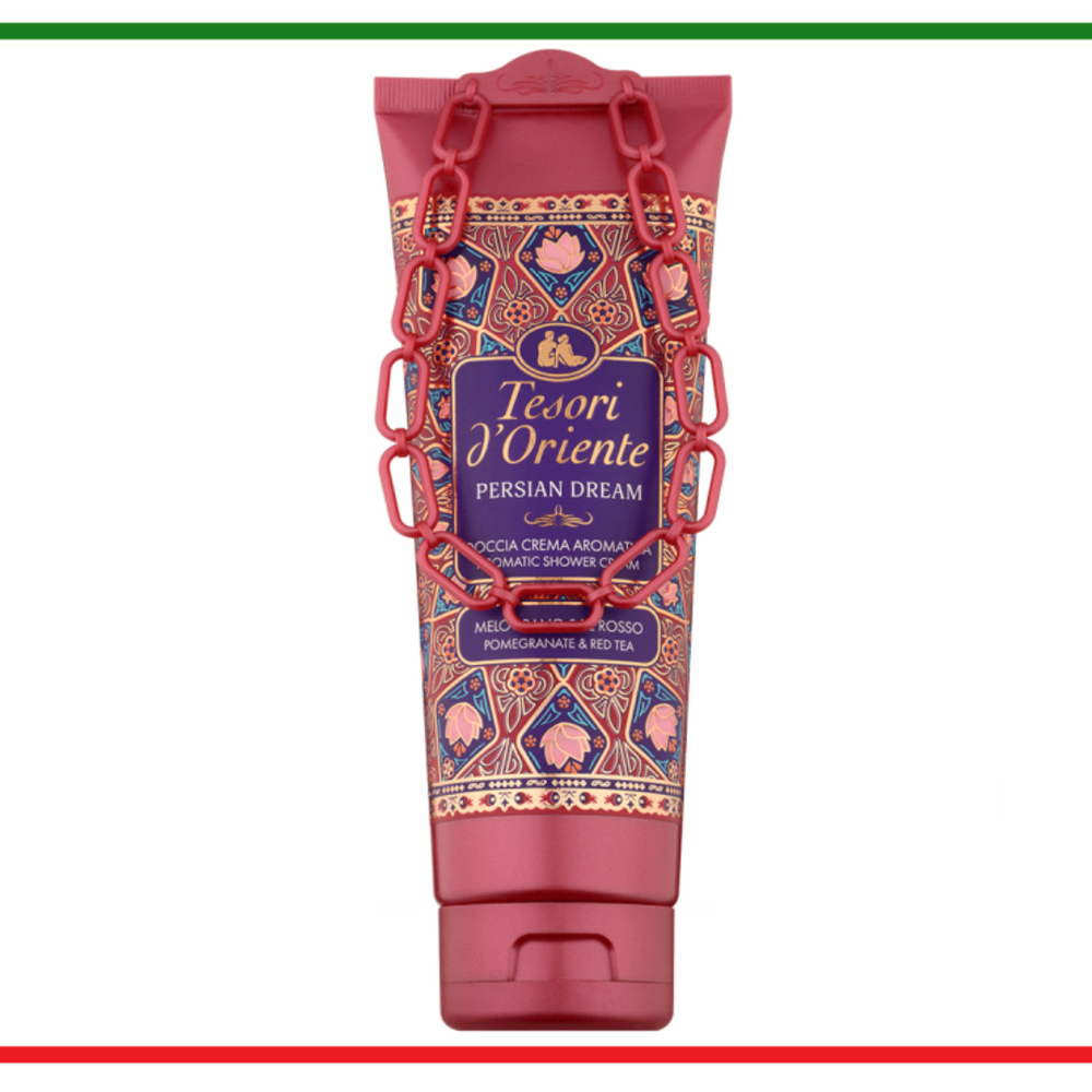 Scopri il potere rinfrescante ed energizzante del bagnoschiuma Tesori D'Oriente Persian Dream, alla fragranza del melograno abbinata alle calde note del legno di tè rosso, esalta l'energia dei sensi, creando un'atmosfera seducente, accarezza la pelle, lasciando un effetto vertiginoso e seducente sensazione, di lunga durata Questa crema doccia contiene oli essenziali profumati, che rivitalizzano e tonificano tutto il corpo. Rende la pelle morbida e levigata, mentre l'intenso profumo idrata e nutre la pelle, lasciandola liscia e vellutata.
