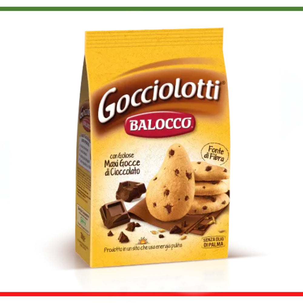 Biscuiti Gocciolotti Balocco. Biscuiti Gocciolotti Balocco cu chipsuri de ciocolata. Ingrediente: faina de GRAU 60.7% - zahar -bucati de ciocolata 14,6%,pasta de cacao, cacao praf, unt de cacao, lecitina de