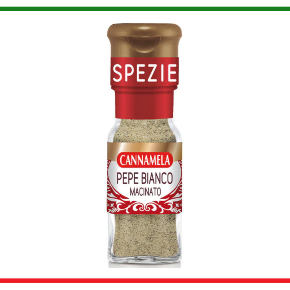 Piper alb uscat și măcinat, selectat din cele mai bune culturi din lume.A se pastra la loc uscat si racoros,ferit de razele soarelui.A se consuma de preferinta inainte de data inscrisa pe ambalaj.Tara origine: Italia.
