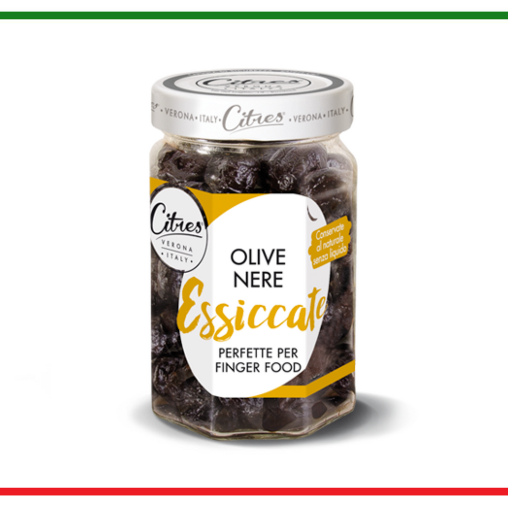 Ingrediente:maslime negre.Valori nutriționale medii/ 100 g de produs: energie:1119kj/272 kcal, grăsimi:28 g din care acizi grași saturați:5.7g, carbohidrați:2.3g din care zaharuri:2.3g, fibre:2.2g, proteine:2.4 g, sare:5.6g.A se pastra intr-un loc uscat si curat.A se consuma de preferinta inainte de data inscrisa pe ambalaj.Tara origine: Italia.