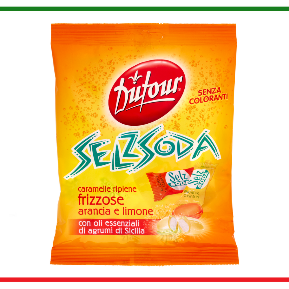 Ingrediente: zahar, sirop de glucoza, acidificanti: acid citric si tartric, regulator de aciditate: carbonat acid de sodiu, uleiuri esentiale de portocale si lamaie.Valori nutrizionale per 100 gr:Valoare energetică 369 Kcal / 1569kJ, Grăsimi 0g ,din cazre acizi grasi saturati 0 g, Carbohidrați 92 g,din care zaharuri 64g,Fibre 0g, Proteine 0 g, Sare 1.4 g. A se consuma inainte de: vezi pe ambalaj.A se pastra la loc uscat si racoros.A se consuma inainte de :vezi pe ambalaj.Tara de origine: Italia.