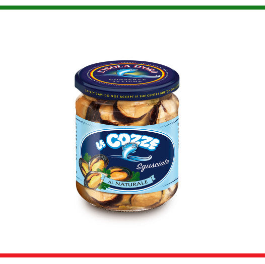 Midii în saramură naturală – borcan 190g Suculente și savuroase, midiile sunt cele mai apreciate și folosite crustacee din tradiția culinară mediteraneană. Cultivate, decojite și apoi curățate cu grijă: Isola D’oro pregătește midiile astfel încât să le aducă naturale și nealterate de la mare la masa ta.