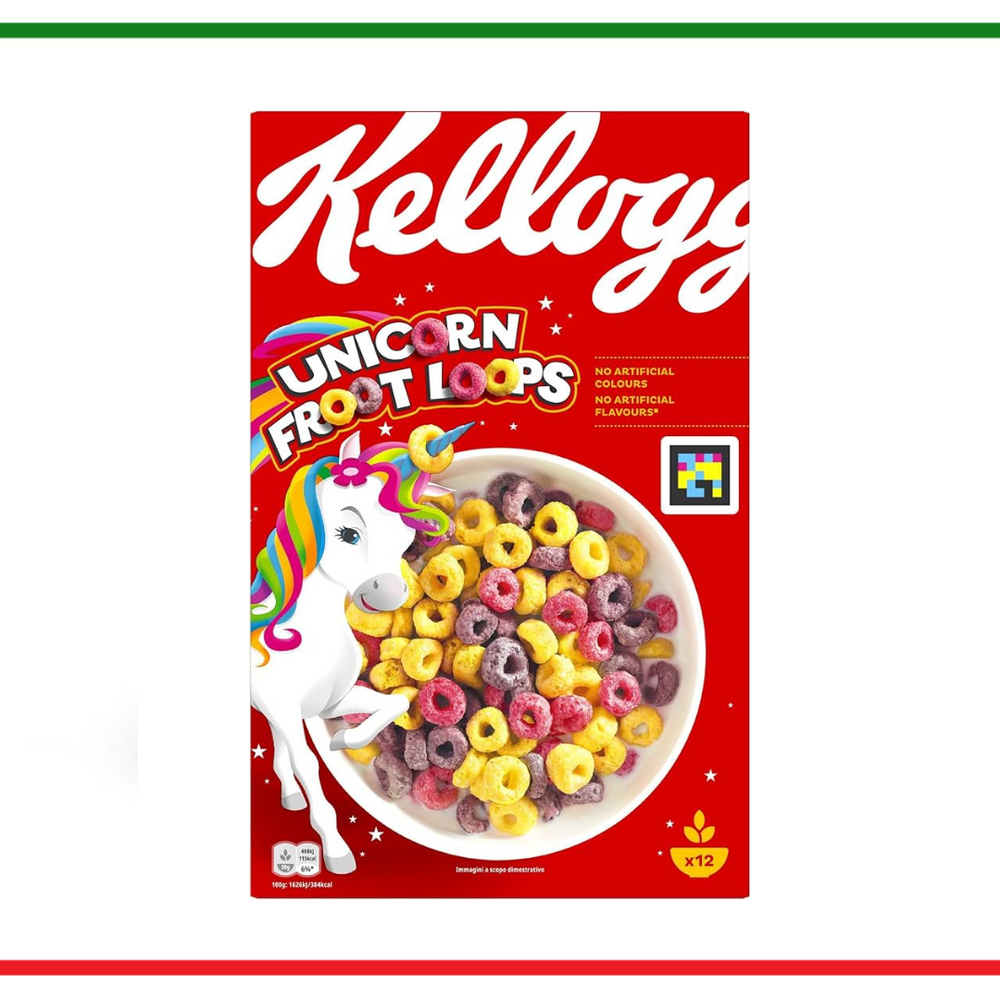 Un zâmbet lung cât un curcubeu, acum că cerealele Kellogg's Unicorn Froot Loops (sărace în calorii și făcute numai din grâu integral pur) se îmbină cu plăcerea suculentă a cupcakes-urilor într-o varietate de culori.