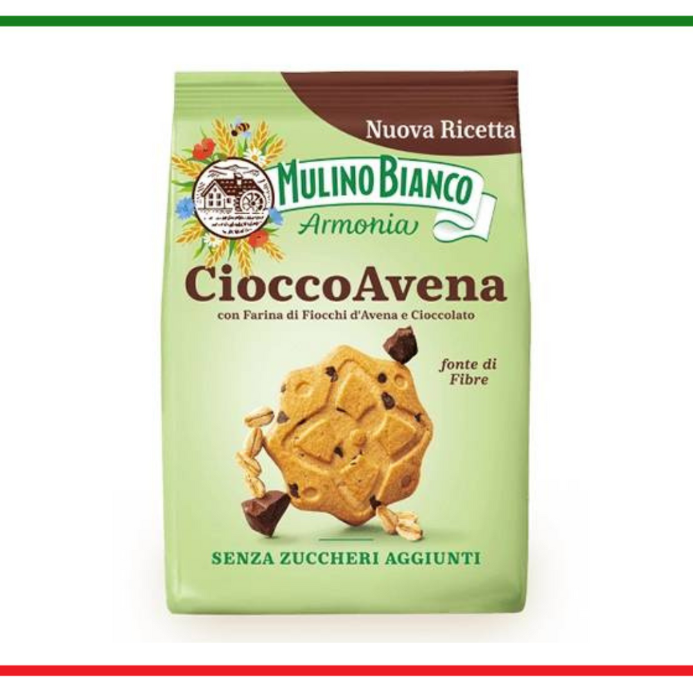 Cioccoavena de la Mulino Bianco sunt biscuiți crocanți care combină făina de ovăz cu delicioase bucăți de ciocolată. Acești biscuiți sunt bogați în fibre și nu conțin zaharuri adăugate, fiind astfel o alegere ideală pentru cei care caută o gustare gustoasă și sănătoasă. Conținutul de 13,9% făină de ovăz și 8% ciocolată oferă o dulceață delicată și o textură bogată. Perfecți pentru consumul zilnic, fără sentimente de vinovăție.
