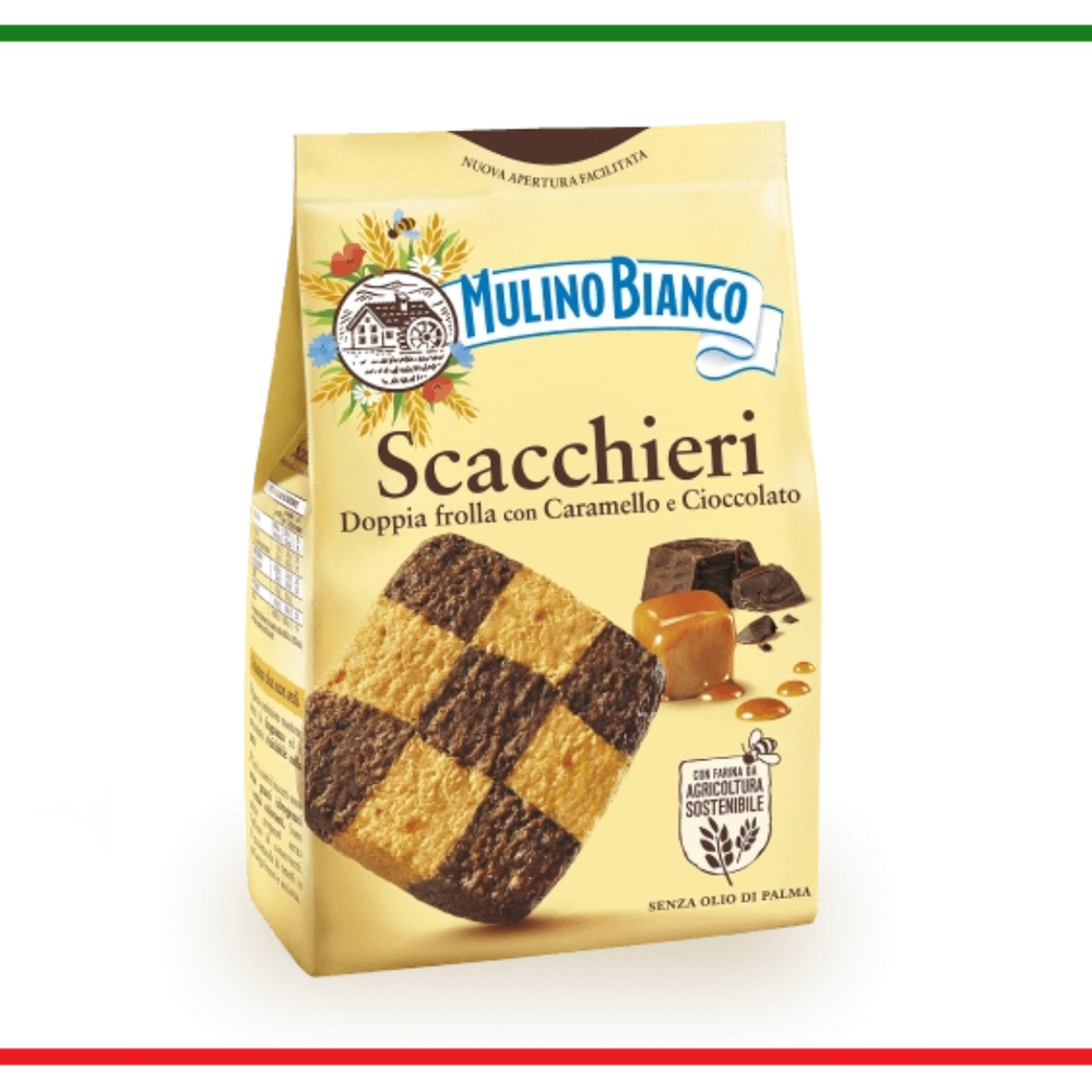 Din surprinzătoarea întâlnire dintre un aluat dublu fraged cu caramel și ciocolată se nasc Scacchieri. Un biscuite unic, atât ca aromă, cât și ca parfum.