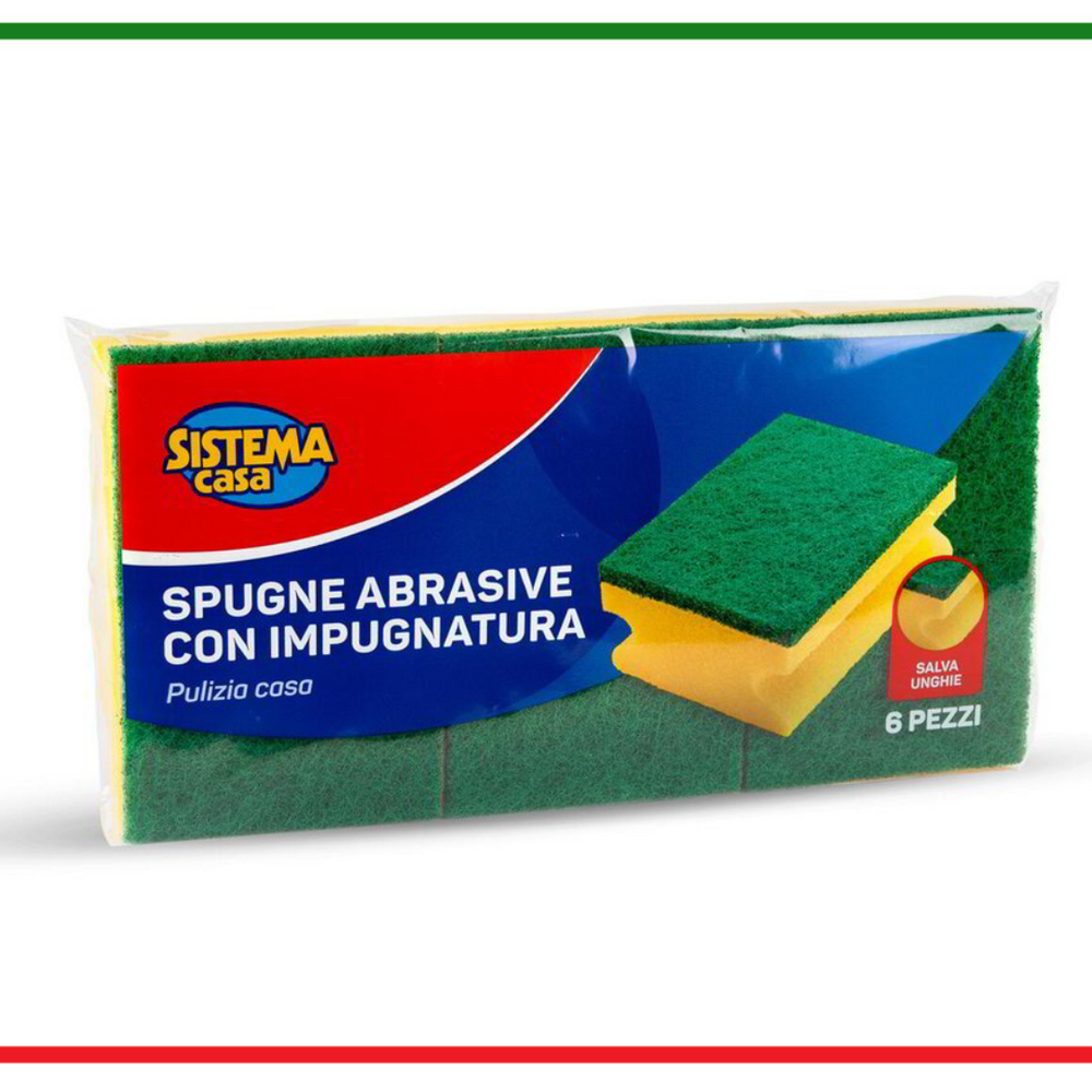 Denumirea vânzării: 6 BURETI DE ȘLEFIT CU MÂNER Caracteristici: Curatenie in casa. Salvați unghiile Piese: 6 Informații suplimentare: Buretele abraziv Sistema Casa rezistă mult timp, menținând întotdeauna o putere mare de curățare. Utilizați pentru curățarea oalelor și tigăilor Produs in: ITALIA