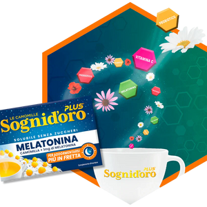 Indiferent de necesitate, găsește combinația perfectă dintre natură și știință pentru tine. Toată aroma unică a camomilei Sognid’oro de întotdeauna, combinată cu 1mg de Melatonină care, datorită proprietăților sale, te ajută să adormi mai repede.