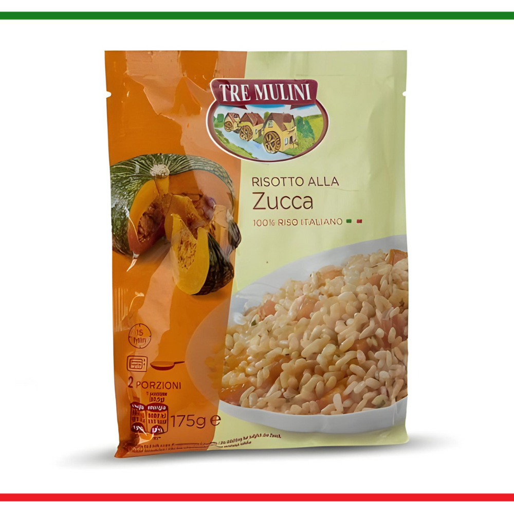 Orez parboiled 74%, dovleac în bucăți și în pulbere 10%, preparat din ulei de floarea-soarelui în pulbere (ulei de floarea-soarelui; sirop de glucoză; proteine din LAPTE), brânză topită în pulbere (BRÂNZĂ; zer din LAPTE; sare), proteine vegetale hidrolizate, extract de drojdie, făină de cartofi, ceapă, sare, pătrunjel