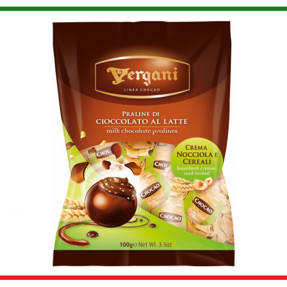 Vergani praline de ciocolata cu crema de alune si cereale 100g