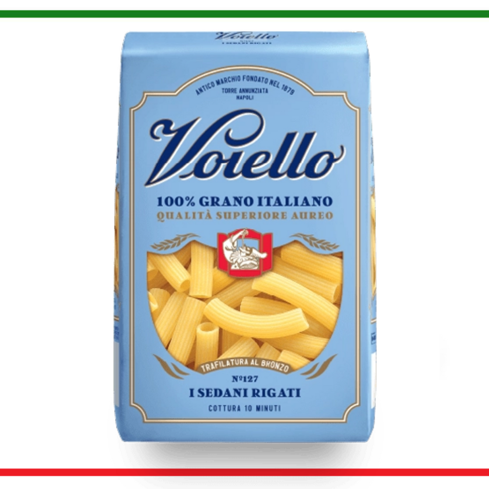 Voiello Sedani nu le lipsește nici măcar un strop de roșie sau un pic de carne în sos pentru a te cuceri la fiecare mușcătură. Și totul și pentru un suflet generos, realizat din Grano Aureo 100% italian. Încearcă-le cu ragù napolitan. Un sos care rămâne în fiecare țelină și în fiecare inimă.